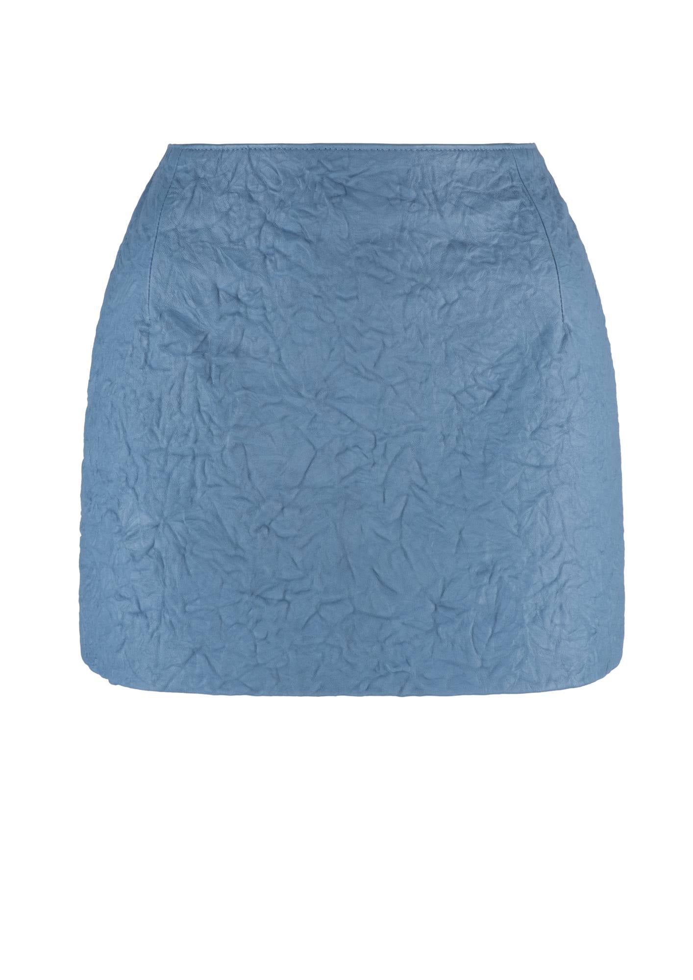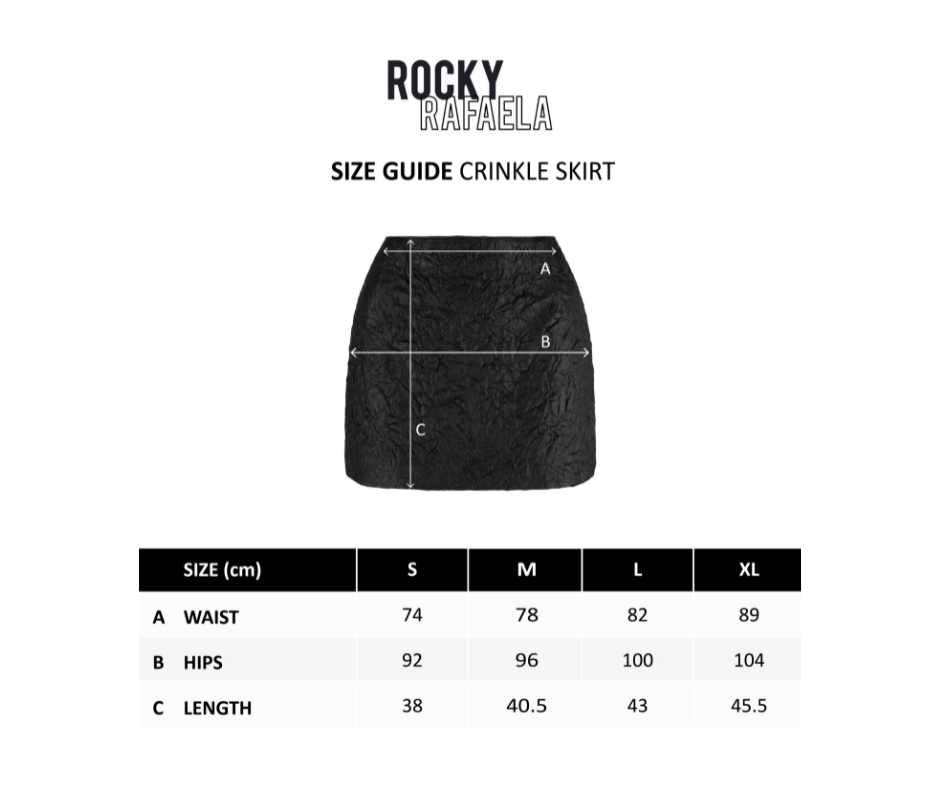 The Rocky Rafaela "Crinkle Leather Mini Skirt" is made from 100% sustainable leather. The crinkled "Rocky Effect" is made by putting the leather through a 3 day process to create the 3D effect.