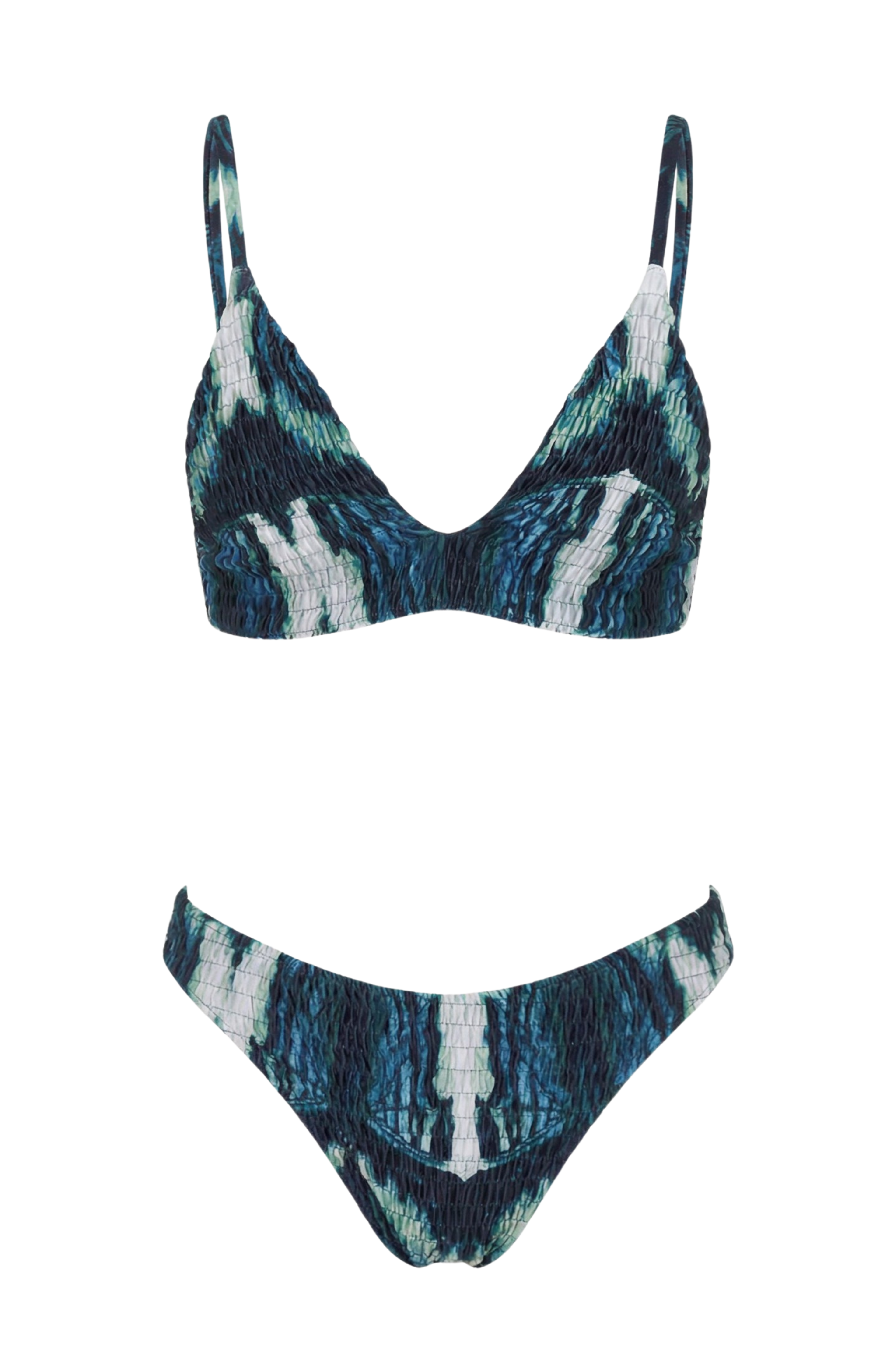 The Rocky Rafaela Butterfly Bikini is a stunning piece crafted from rouched recycled polyester, combining style and sustainability. This bikini comes as a set and features a fixed triangle bralette for a supportive yet feminine fit and medium-coverage, mid-waist bottoms, striking the perfect balance between comfort and confidence.